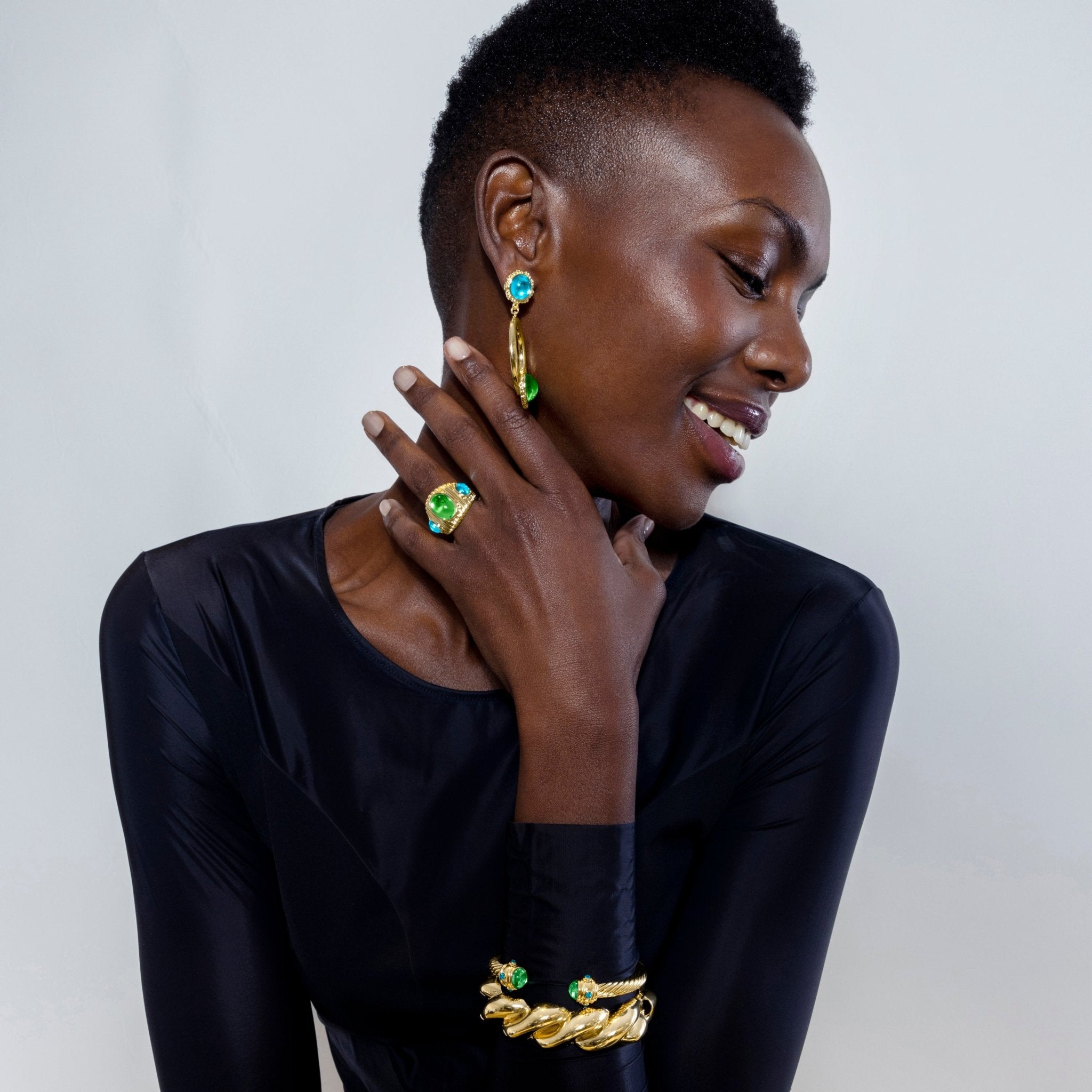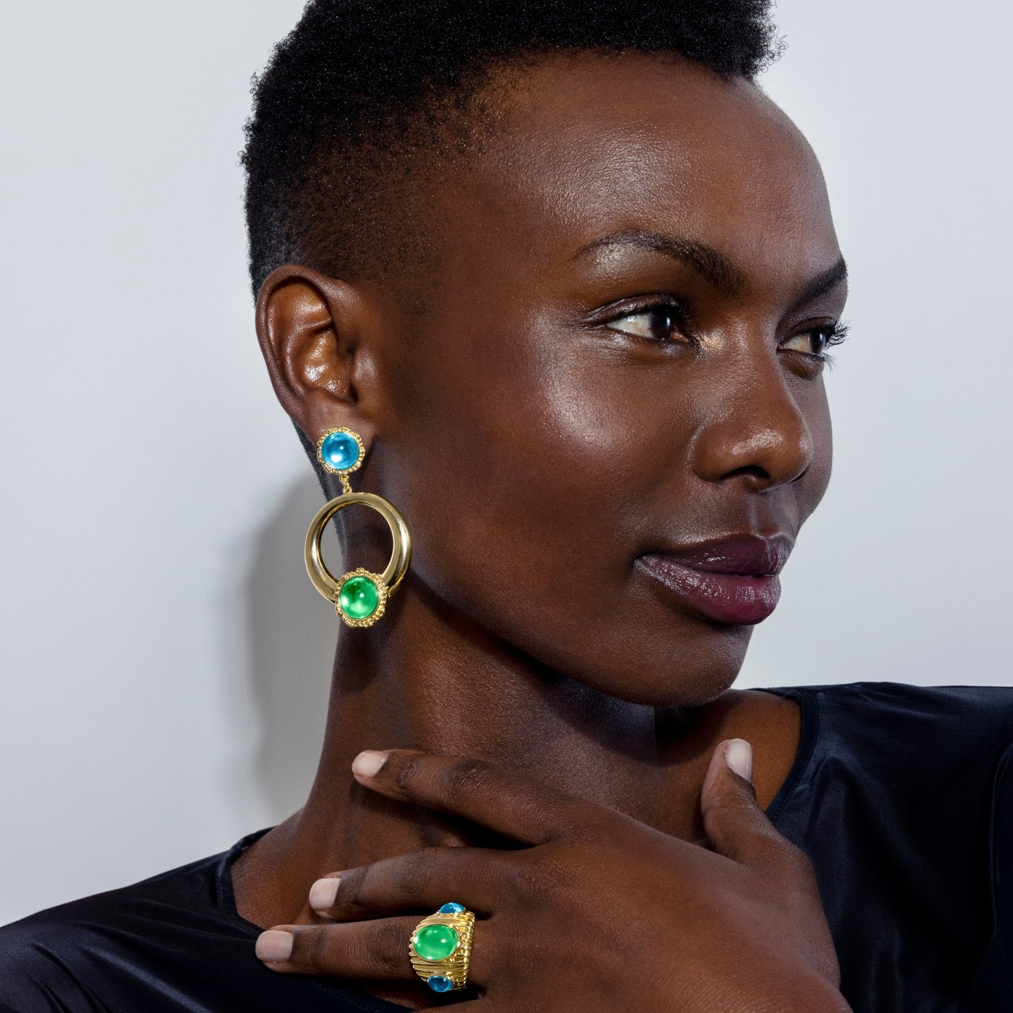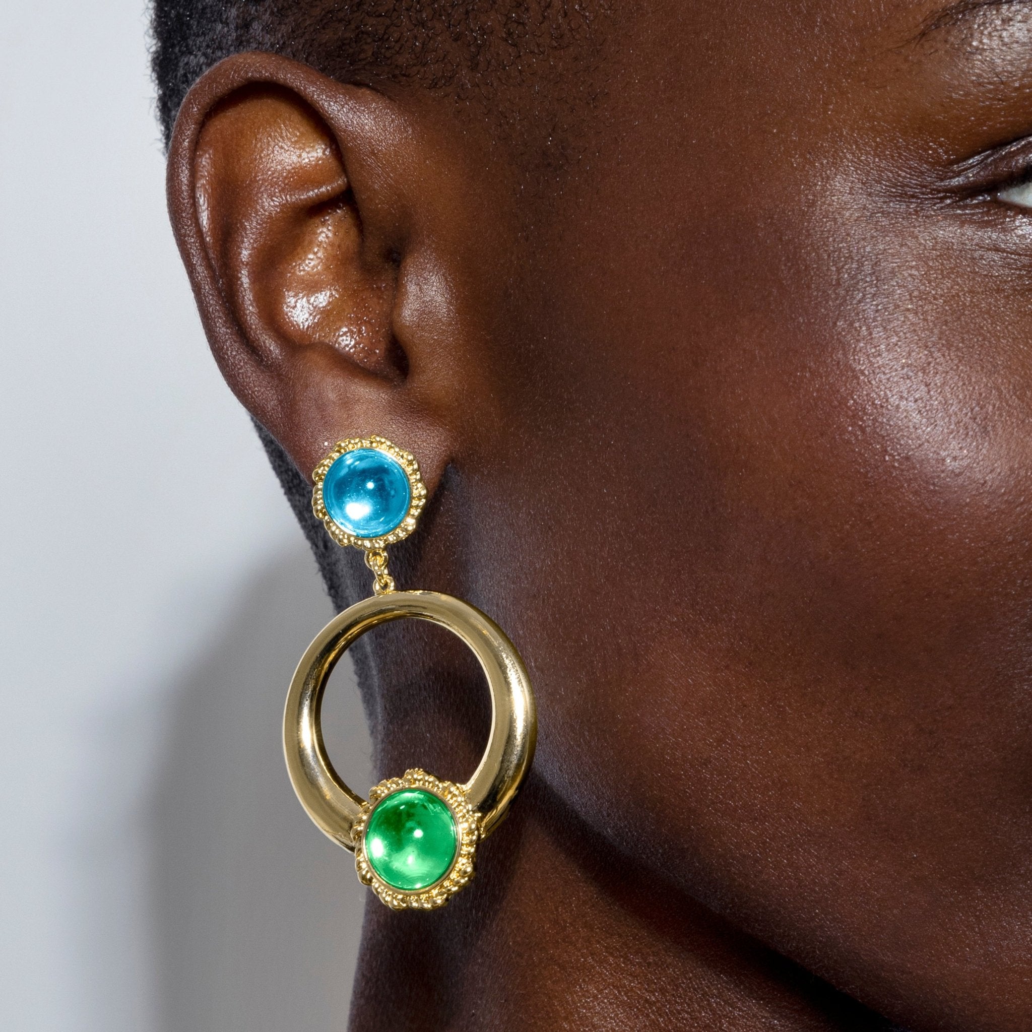 Pendientes Sirose de Cristal Multicolor acabados en oro amarillo de 18k. África se convierte en la línea perfecta para mujeres con personalidad, que no temen arriesgar y lucir piezas con carácter propio.